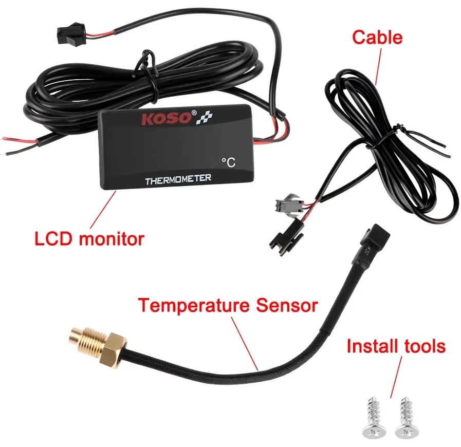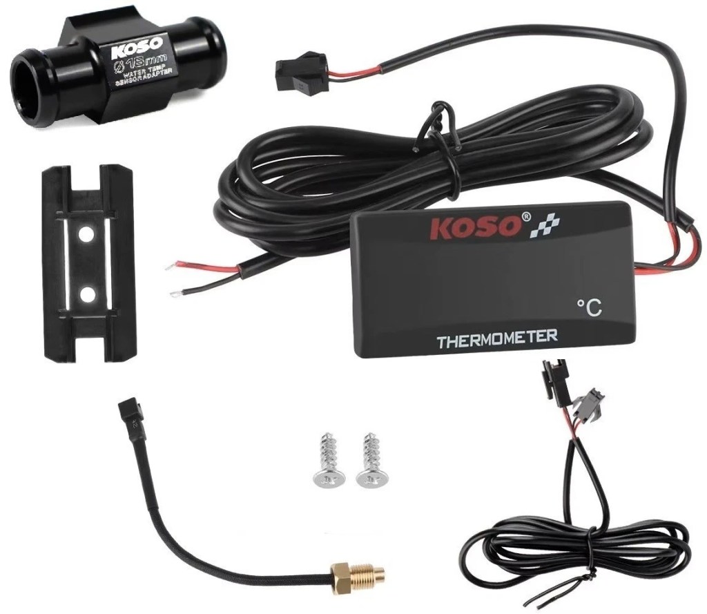 - 1 set di termometri per moto con display rosso + raccordo 18 mm in alluminio.
